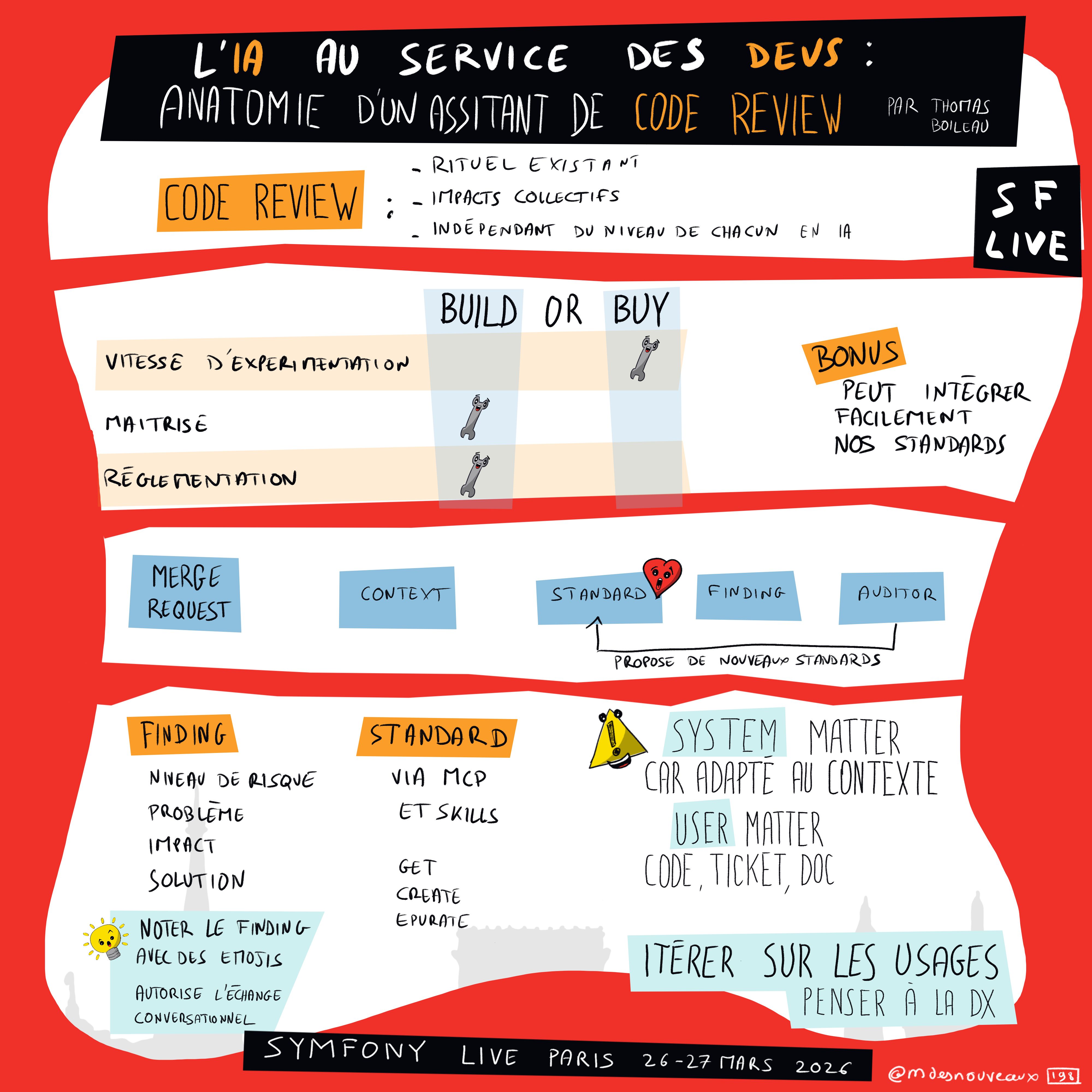 Cette sketchnote a été réalisée lors du Symfony Live Paris 2026 le 26 mars 2026. Elle illustre la présentation "Symfony + FrankenPHP : une DX comme vous n'en avez jamais vu" donnée par Kévin Dunglas, qui présente comment FrankenPHP transforme radicalement l'expérience de développement Symfony.